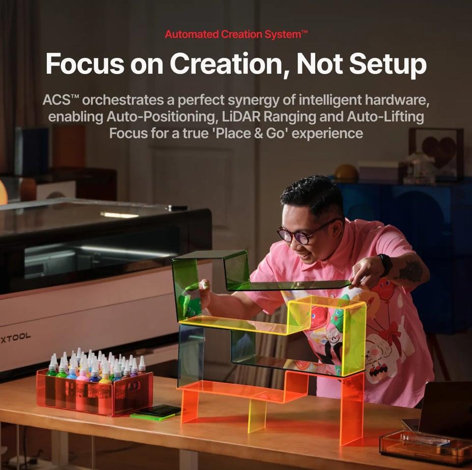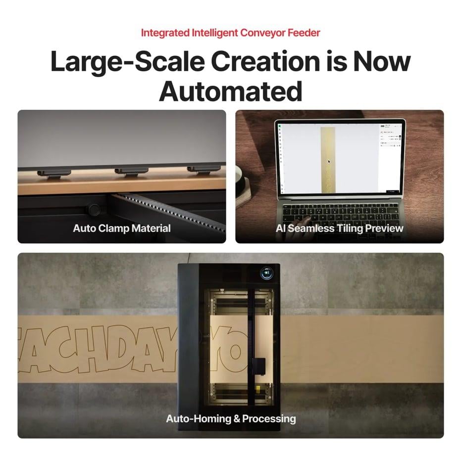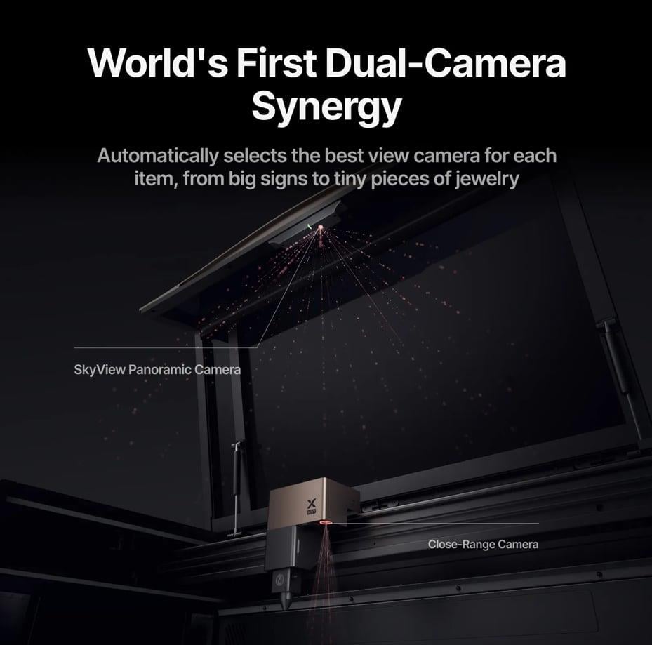 Çift lazer gücüyle 300'den fazla malzemeyi işleyin: kesim için güçlü 80 W CO2 lazer ve hassas metal kazıma için 5 W IR lazer. LiDAR Otomatik Mesafe Ölçümü Yeni Temassız LiDAR Mesafe Ölçüm Sistemi, anında mükemmel odaklamayı kilitleyerek son derece verimli ve hassas işleme sonuçları sağlar. Her ölçekte kusursuz hizalama elde edin. 3D Önizlemeden Mükemmel Gerçekliğe, Anında Döner gravür hiç bu kadar kolay olmamıştı. Devrim niteliğindeki MagSwap™ tasarımı, saniyeler içinde zahmetsiz, aletsiz kurulum sağlar. Paralel olarak, 360° LiDAR Mapping™ mükemmel bir 3D önizleme oluşturarak, gravürden önce tasarımınızın hizalamasını görsel olarak onaylamanıza olanak tanır. Otomatik Odaklama Yerel NPU, LiDAR mesafe ölçüm verilerini işler ve AutoLift Base'i anında mükemmel yüksekliğe getirerek, manuel ayar yapmaya gerek kalmadan kusursuz bir odaklama sağlar. Otomatik Konumlandırma Gelişmiş Çift Kamera Sistemimiz, büyük ve küçük projeler için 0,20066 mm'lik mikroskobik hassasiyet sağlar.